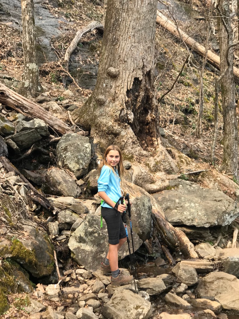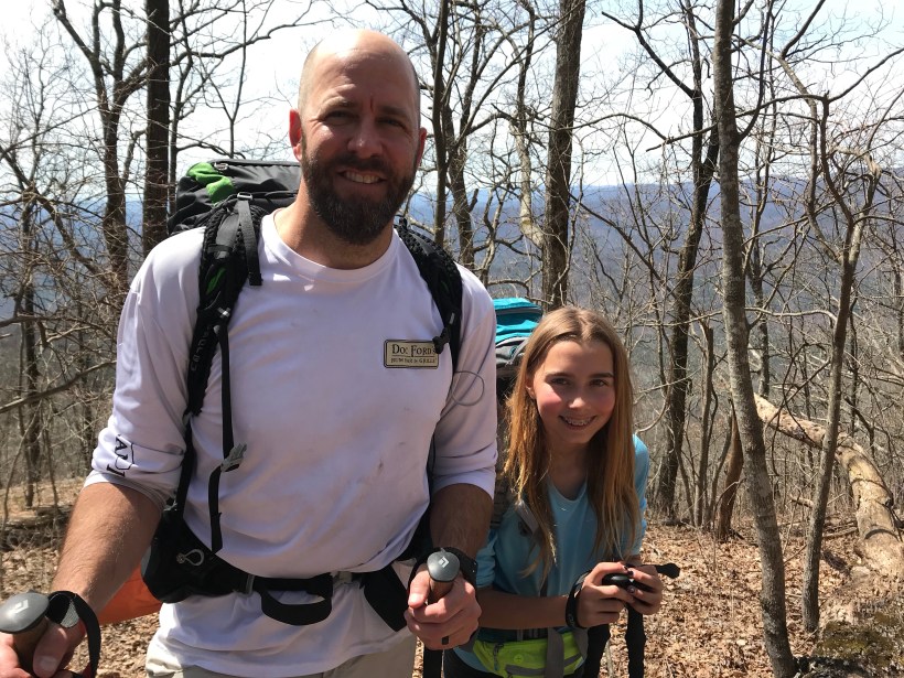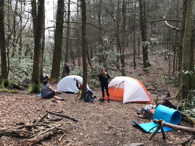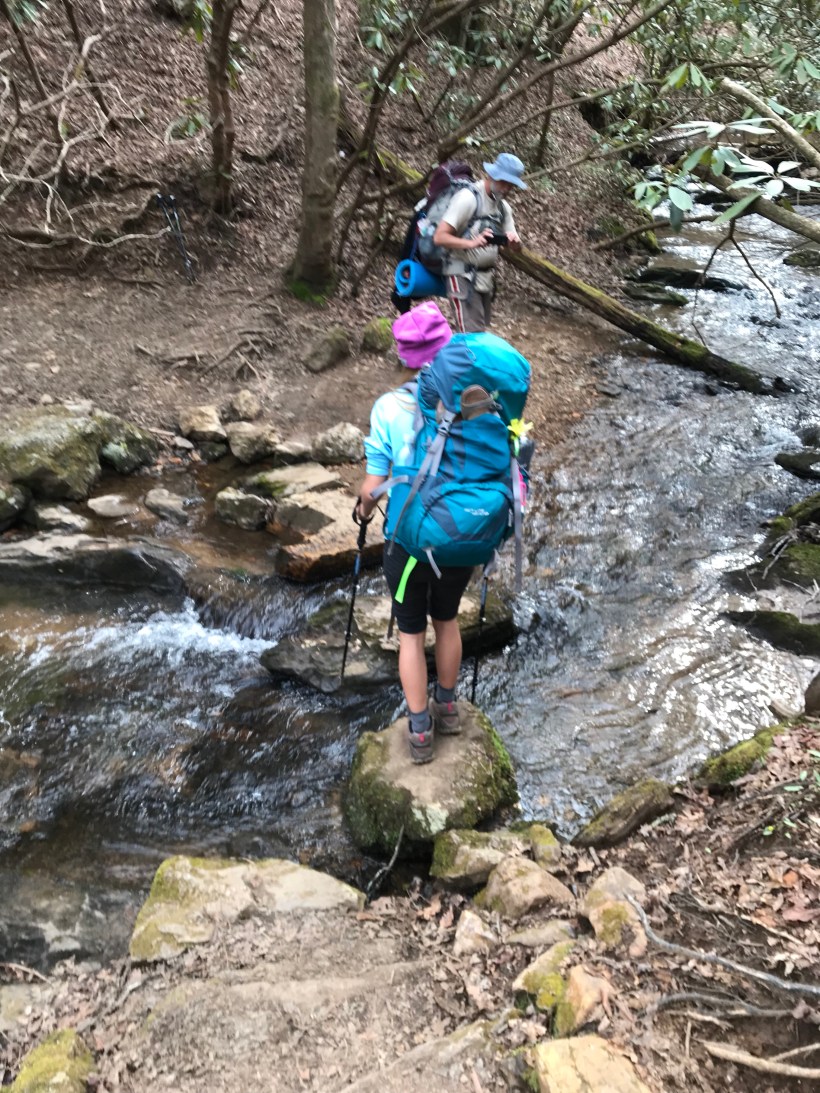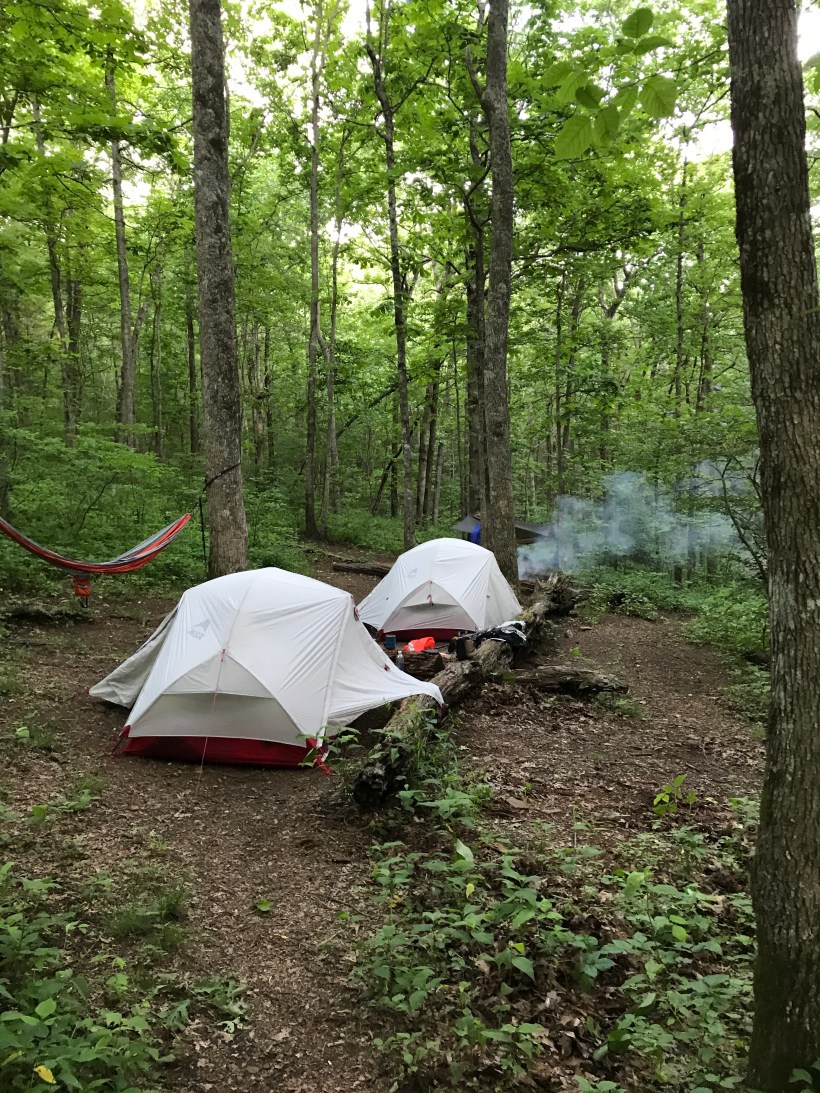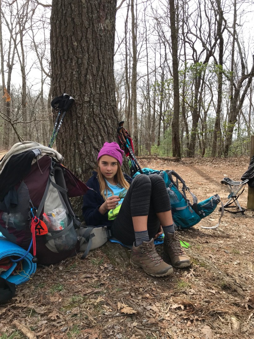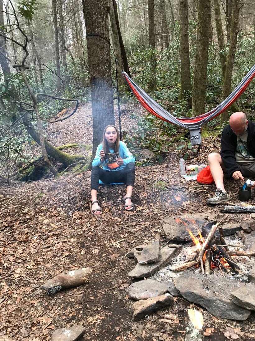 Had rough sleep last night but got up eager to put some miles in. Today we climbed Sasafrass mountain. Tough climb but Ada (now Tater Tot) was awesome once again. We are definitely playing a little pretend thru hiker and have this little trail family we formed with crunchy, Durango, and momma Luna as we’ve played some leap frog with them on the trail. Ended up camping with all of them at a really nice spot on the creek. Had to throw our own bear bags tonight. Hope they make it.