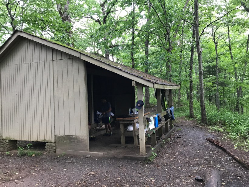 Another father son combo going southbound.  Shared some conversations with them along with wanderer at blue mountain shelter.  All of us seeking reprieve from the rain.  This duo had been moving.  They were at 14 mikes for the day and had 8 to go.  What a great experience for father and son.  This was the beginning of their section hiking AT.