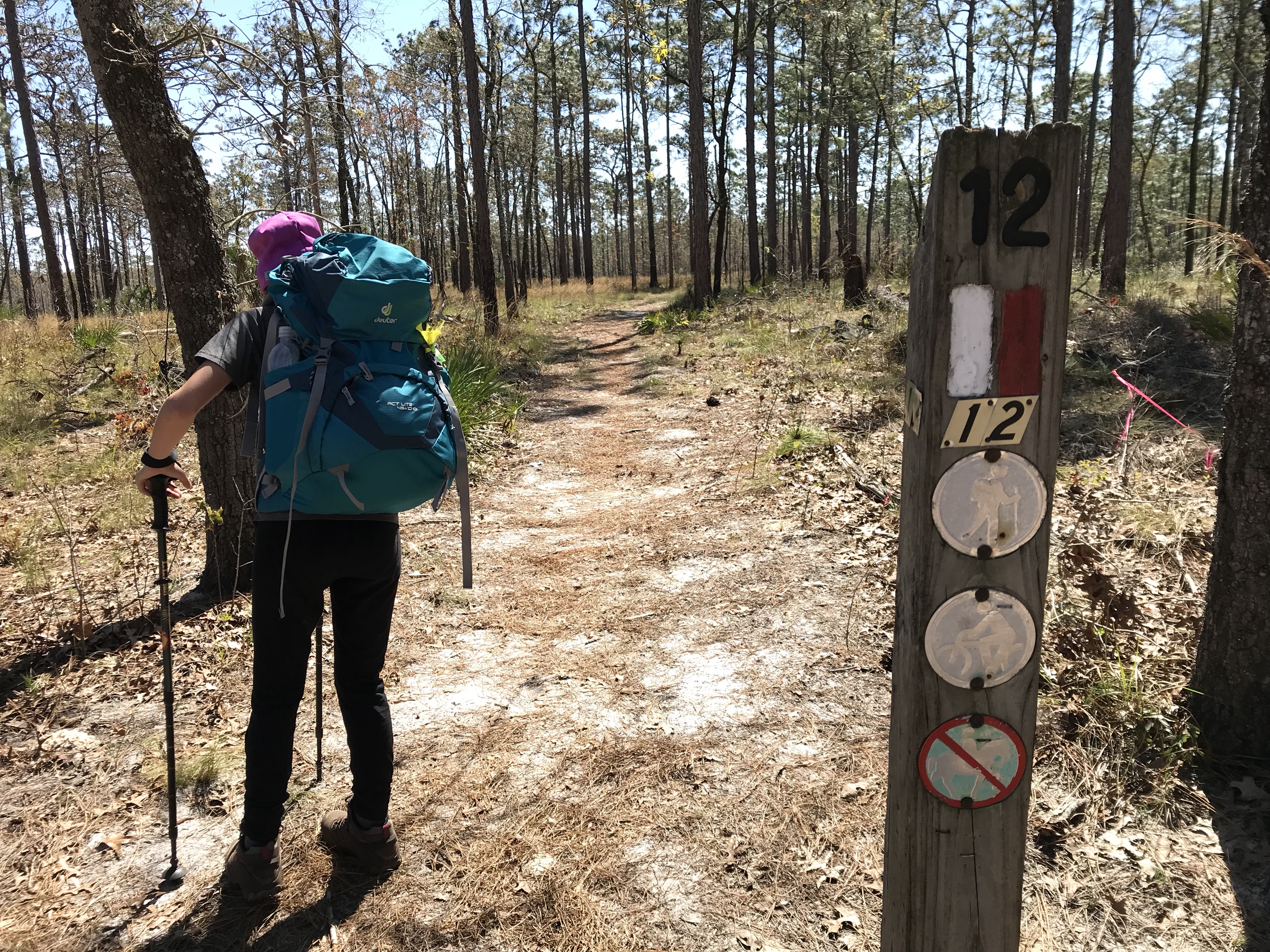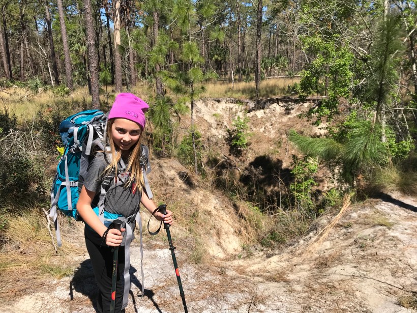 She has a pack, sleeping bag and pad, and got her boots yesterday.  The plan is to do a 3-5 day section hike starting at Springer on March 31st.  We’ll be right in thick of thru hiker bubble.  For those that don’t know must thru hikers (those attempting to hike trail from beginning to end in 6 months or less) usually start in March and April.   Being that Adas spring break is when it is we get to play pretend thru hikers for a few days.   All that aside we need to be prepared so had to test new boots and get some miles in today.  Ada rocked out our 6 miles like a champ hauling a 17 pound bag.   We’ll see how she feels tomorrow.   Did an out and back hike today in wekiva springs.   So far so good.  Still need to put the final touches on our plan such as where are we going to stay post hike to pamper ourselves.   So today’s outing is the beginning of our adventure together.    My continuation of the section hike I started last year with Derek will also resume.  Yes I’m repeating miles.  So what!
