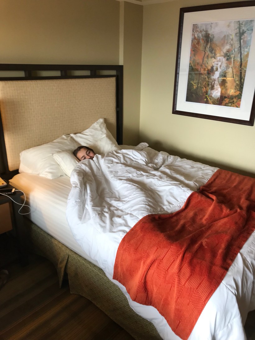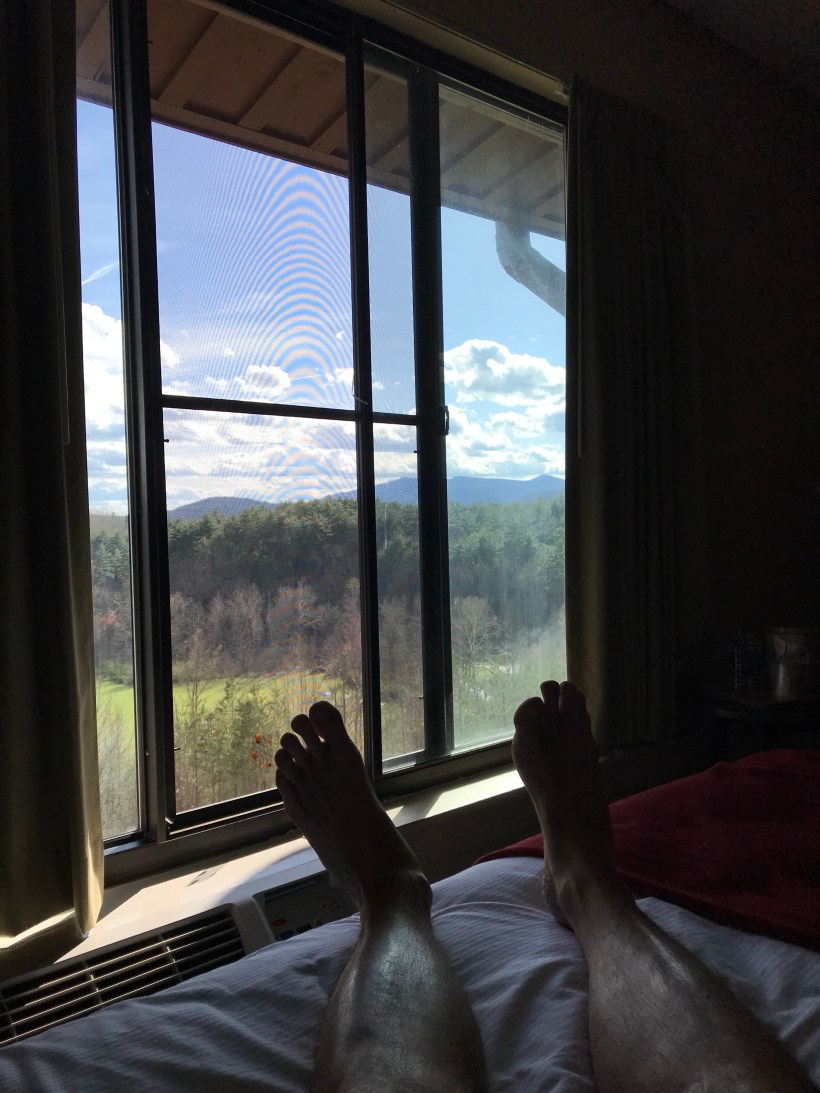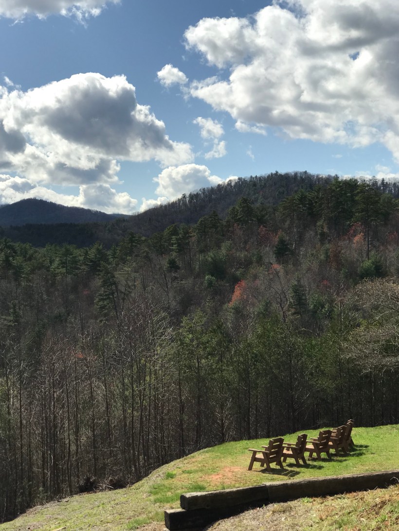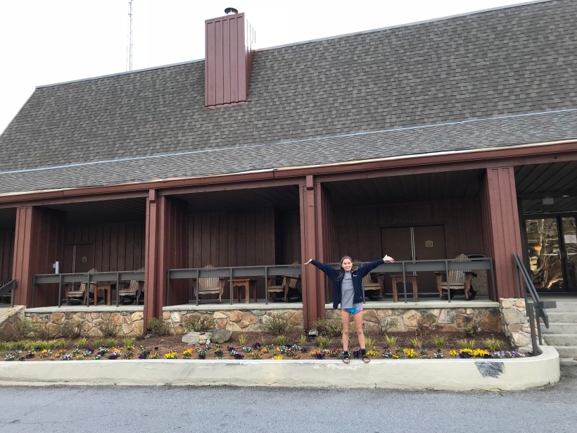 Here we go! Ada and I are embarking on our Appalachian Trail adventure tomorrow! We drove 9 hours today to end up at Unicoi Lodge at a Unicoi State Park. Got here early afternoon and just unwound for a few in the room. Beautiful area once you get through the twilight zone German/Swiss alpine village of downtown Helen. Unicoi is only 2 miles from city center but at home in the mountains and woods. Lots going on for Easter weekend but we’re keeping a low profile in favor of rest/pampering of hotel beds and food. Had a great pizza at the lodge restaurant and now relaxing in the room while Ada crams in some last minute tv. UP is on and she’s relating to Russel and his wilderness explorers inadequacies!