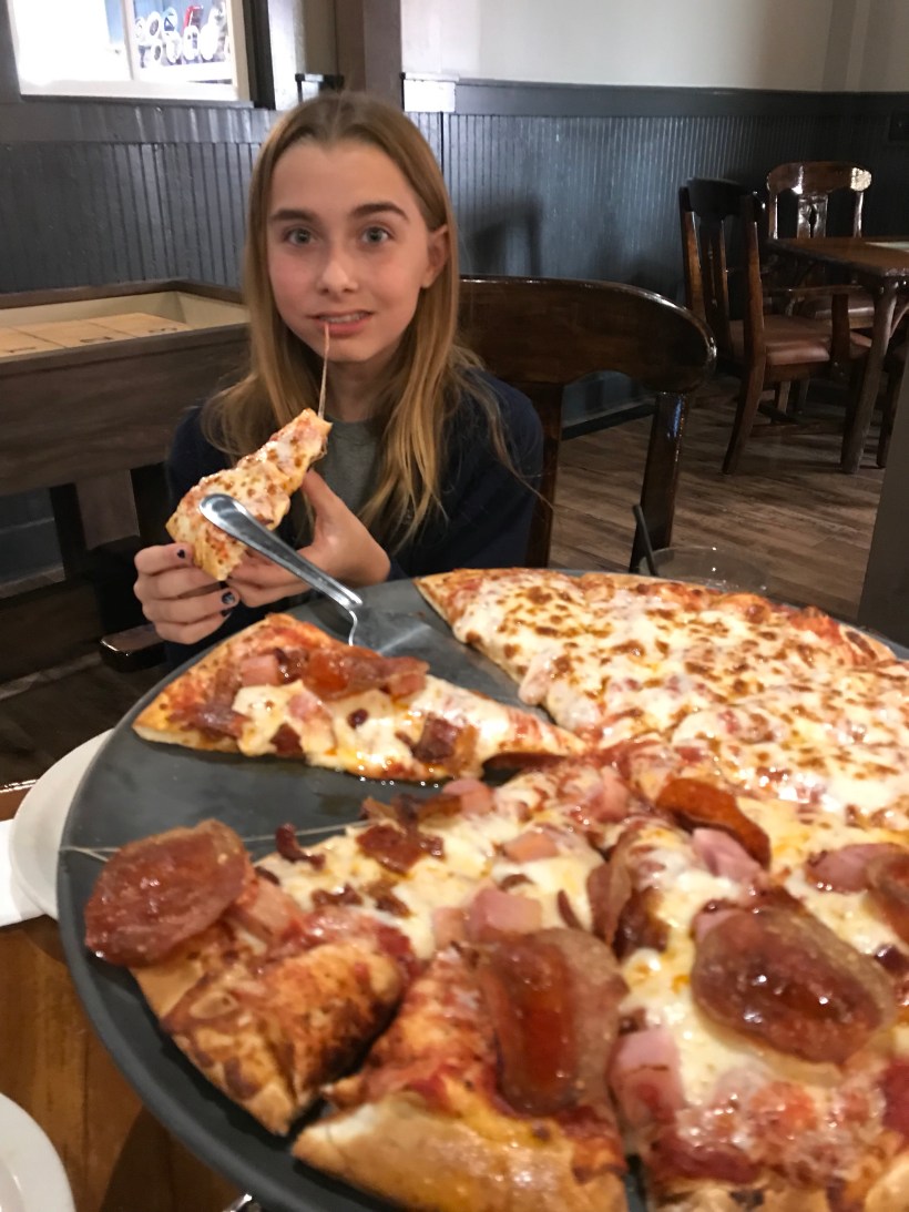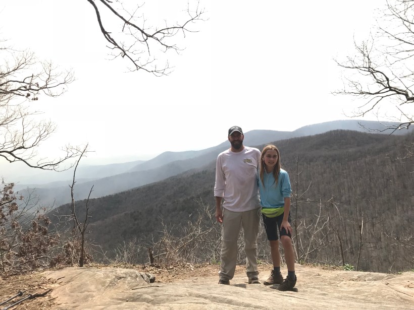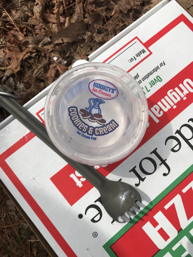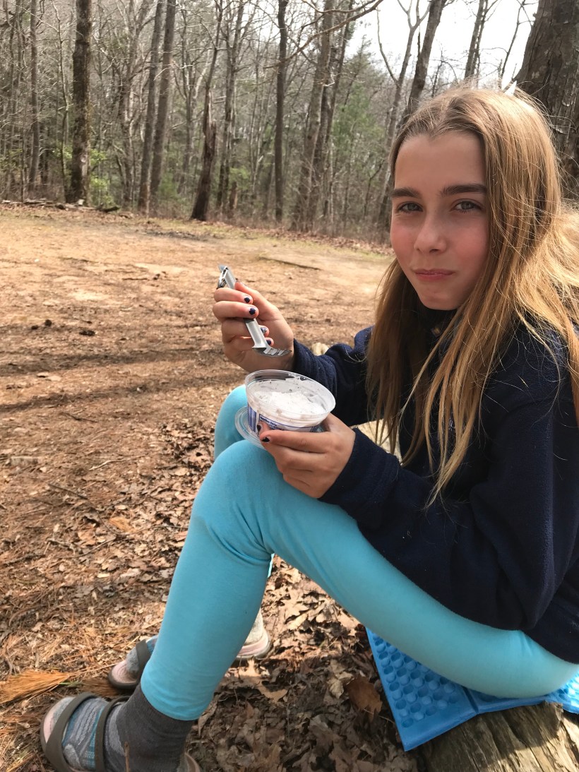Had a better flatter night of sleep last night by the creek. We rolled out about 9:30 with the idea we may spend night 3 miles up the trail at Gooch Gap. The plan included a plan for Momma Luna’s sister Aria and herself to drive into town to get pizzas for lunch. Aria had her car there and is planning on hiking a few months with her so it worked out great. Momma Luna also surprised Tater Tot with a cup of cookies and cream ice cream. After a great meal it was decided to hike the next 3.5 miles where Aria would meet us at Woody Gap. In doing so she helped slackpack mamma Luna and tater tots packs. Slackpacking is when you have someone drive your pack up to another place further up the trail. Ada was more Tater was more than happy to ditch the weight for the final stretch. Good thing she did as the last 3.5 were mainly up hill including Ramrock mountain. Was tough but we were rewarded with some really cool views. Got into Woody which is right off a main road and parking lot. Probably another 20 tents or so scattered about. We all had our final meal together as a little group. Really am proud of Ada (Tater Tot)! Our hike ends here but one more night under the stars in the mountains. Truly am grateful for this time! Our ride back to civilization picks us up at 10am tomorrow. Then off to Amicalola Lodge for some pampering.