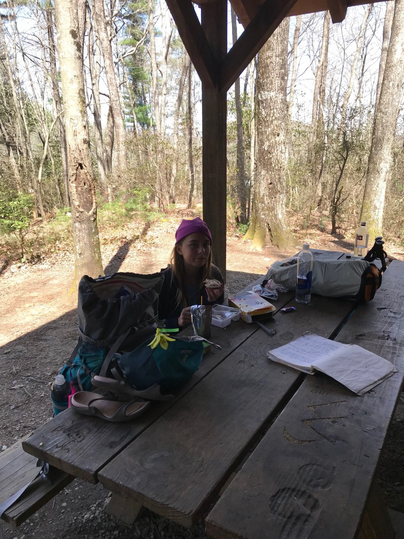 So neat thing happened today. Crunchy gave Ada her trail name : Tater Tot. A little rhyming play off her name but sat well with her so tater tot it is. She’s really enjoying hanging with this group. She was telling story after story tonight at campfire.