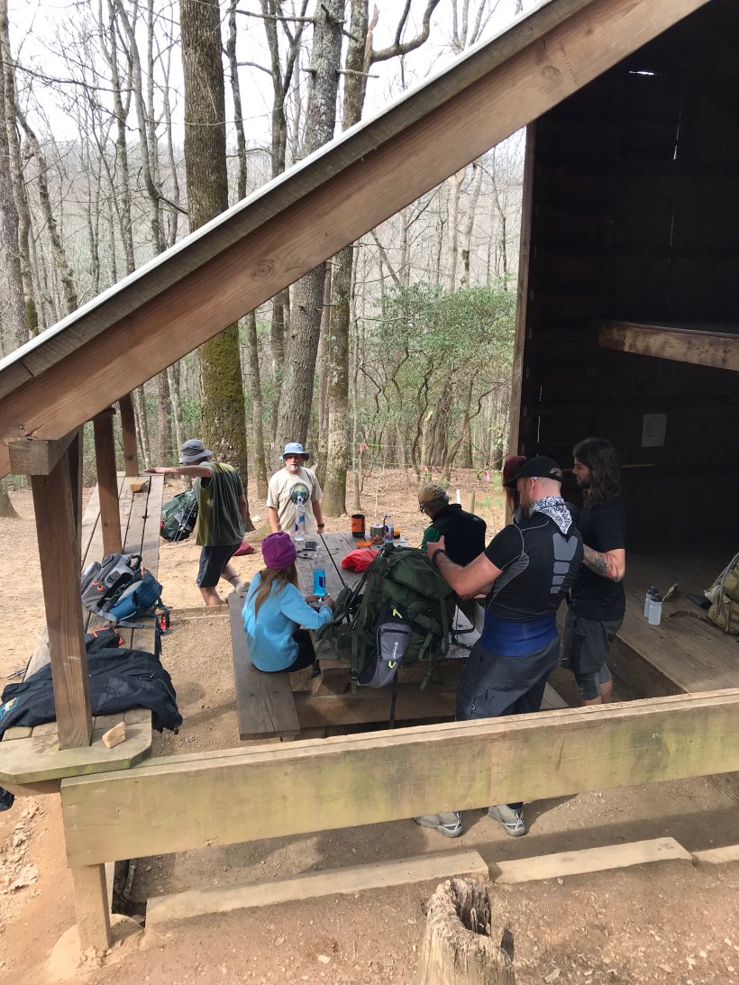 Finished our day at Low Gap. 41.9 miles done and 27 to go or what ever the trail and our bodies tell us.  Learned the body lesson yesterday.  Low gap camp and shelter are busy.   There’s about 15 of us here including ourselves.  Spread out a bit which is nice.  Also next to a creek for easy refill.