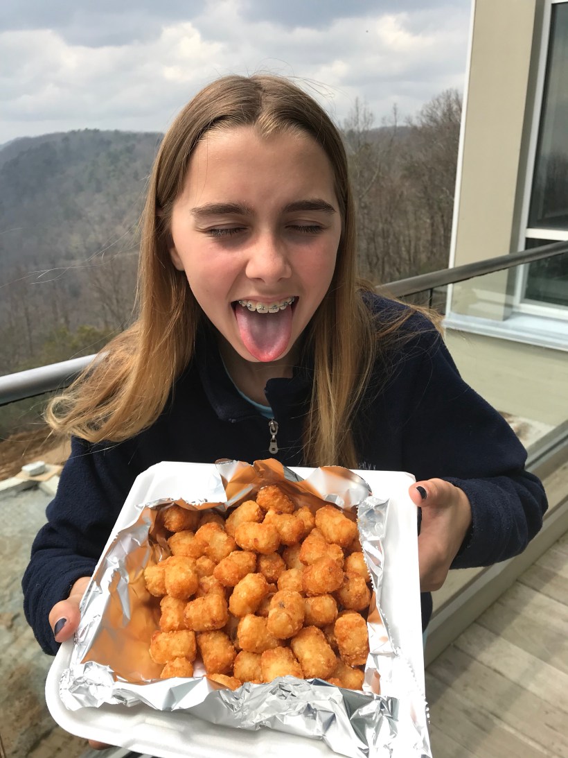 Tater and I rolled into Amicalola around 2pm and immediately went to check out the food. Low and behold tater tots were on the menu. Time to celebrate.