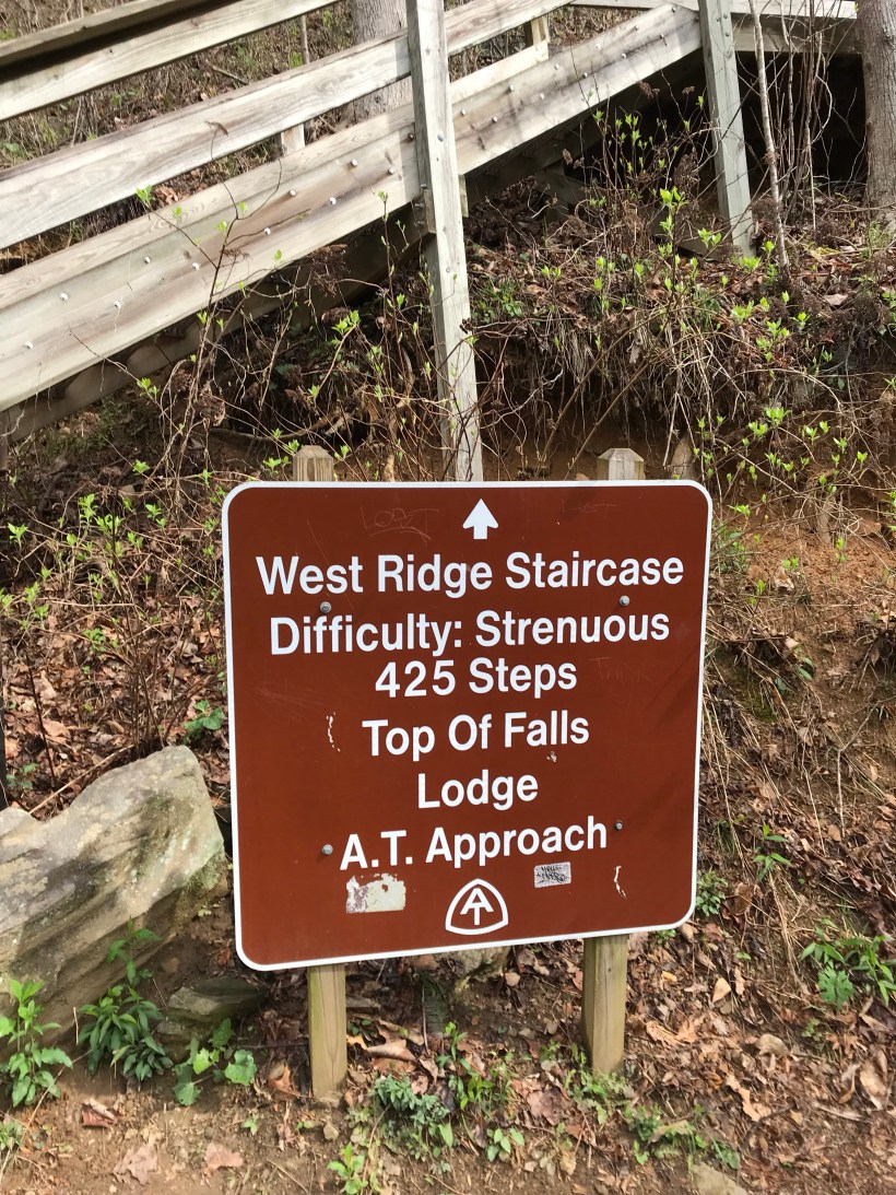 We got off trail yesterday and settled down at Amicalola Lodge fo2 days of post hike recovery. Doing it at the place that most thru hikers start their journey through the AT. It’s been rewarding in the fact that we have nice fluffy beds and views of the mountains we just hiked. We’re still immersing ourselves in the trail culture by hanging out in lobby and visitor center watching thru hikers and section hikers alike start their journey here. While we’ve been cozy being lazy, Tater Tot and my thoughts keep drifting back to our pals on the trail going all the way. We were awoken to a strong storm last night with howling winds to woke us both up. We turned to each other and both thought the same thing…. hope Crunchy, Durango, and Mama Luna are doing ok. We awoke to a fog filled morning but went down to visitor center to check out the Approach Trail. 12 thru hikers had already left by 9:30am. The trail gets busier and busier each year. We talked with one of the rangers who showed us the registered hiker list. 3 years ago at this time there was a total of 978 hikers that had embarked on a thru hike. This year as of today it was double that. Not sure if that’s a good thing or bad thing. Certainly been good for Tater and I. We spent an hour or so exploring the park. The Georgia state parks system is awesome! Adventure lodges. We took it easy and just explored the falls and are enjoying our last moments as AT hikers. Happy Trails to all on trail, starting soon, or planning on going!